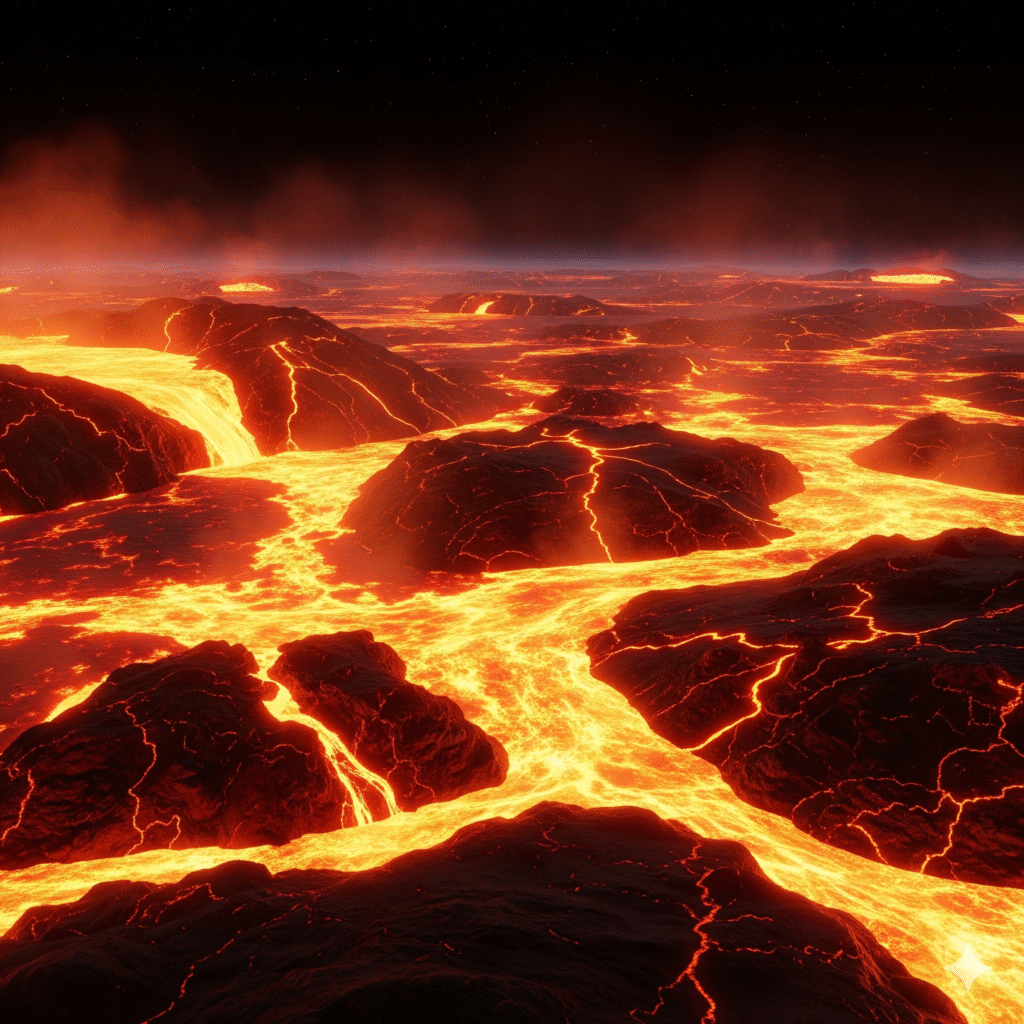 ৬০০০°c বা এর বেশি তাপমাত্রায় গোটা গ্রহ ছিল গলিত শিলার মহাসমুদ্র।