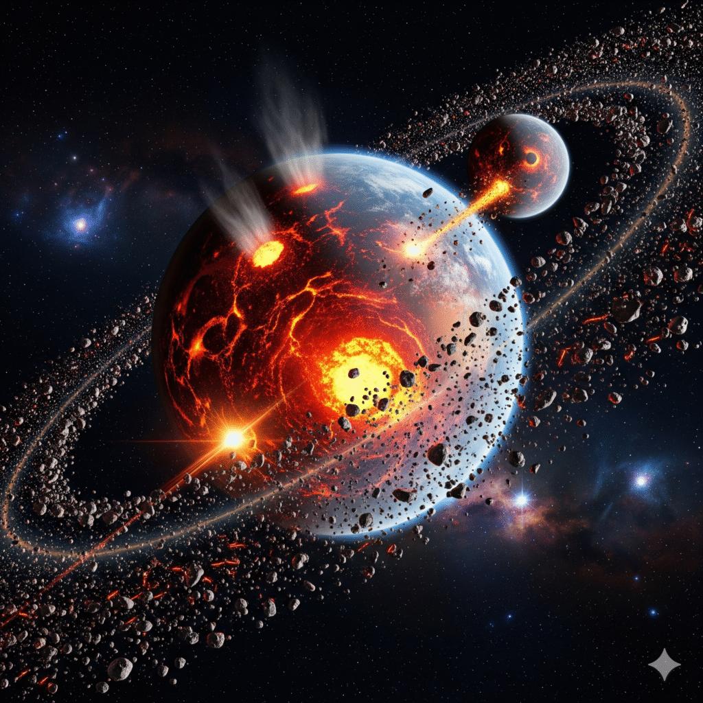একসময় “থিয়া” নামে মঙ্গল আকৃতির এক গ্রহ বিধ্বংসী রূপ নিয়ে,