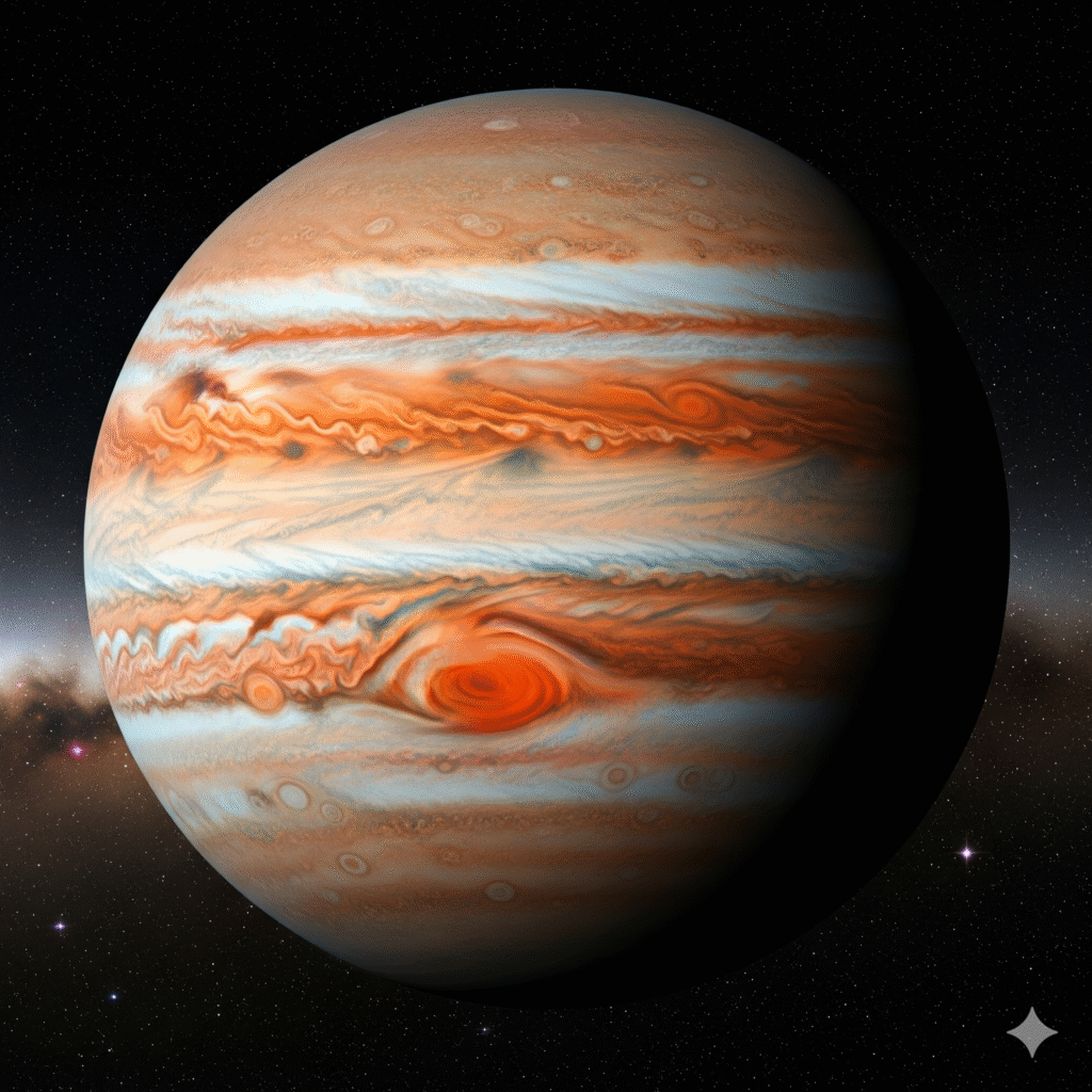 ‘গ্রেট রেড স্পট’-নামক অনেক বড় বড় ঘুর্নিঝড় জুপিটার / বৃহস্পতির মধ্যে প্রচুর পরিমানে মজুদ আছে।