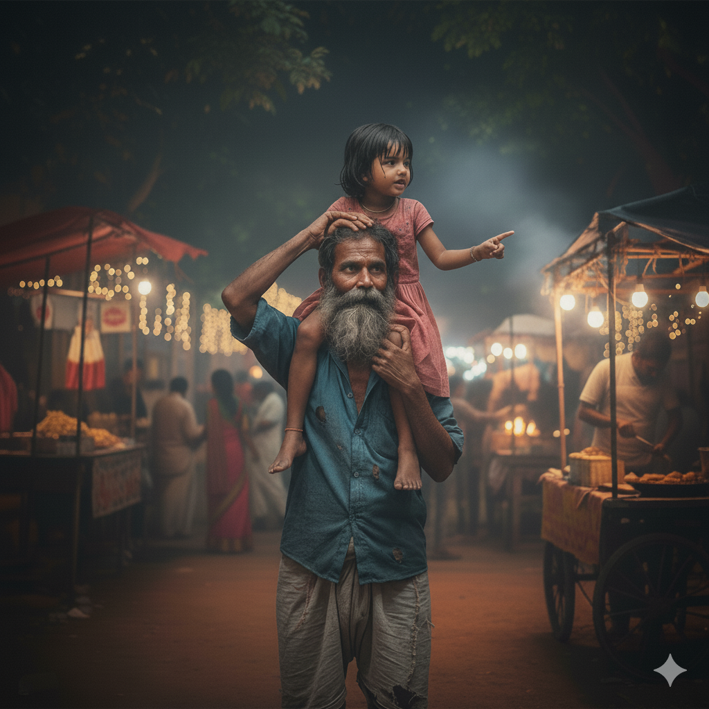 সেখানে একজন মানুষ কিভাবে নিঃশব্দে পরিপূর্ণ হয় সন্তানের আনন্দ নিশ্চিত করে।