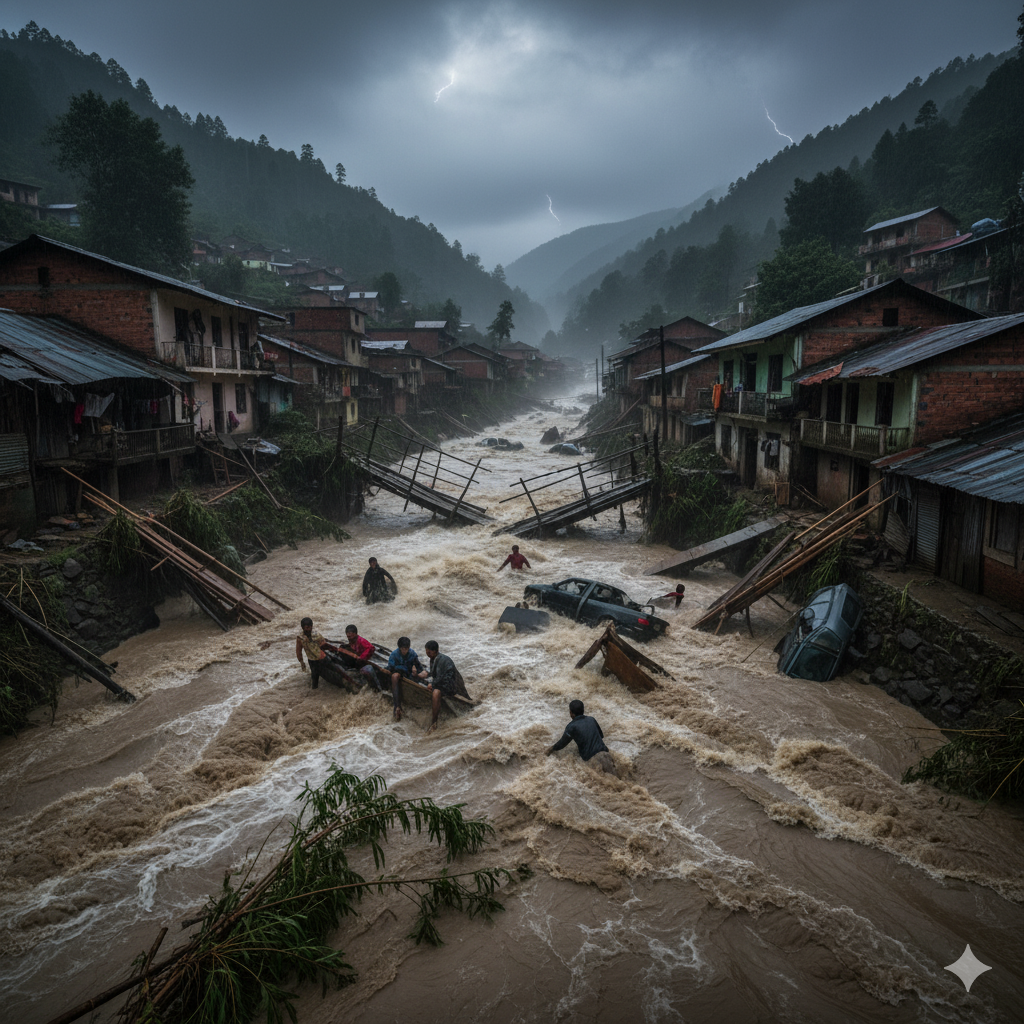 তাই সমতলে মাঝারি বৃষ্টি হলেও, তা পাহাড়ি এলাকায় ভয়াবহ রূপ নেয়। - ৪. সর্বোপরি– জলবায়ু পরিবর্তনের কু-প্রভাব।