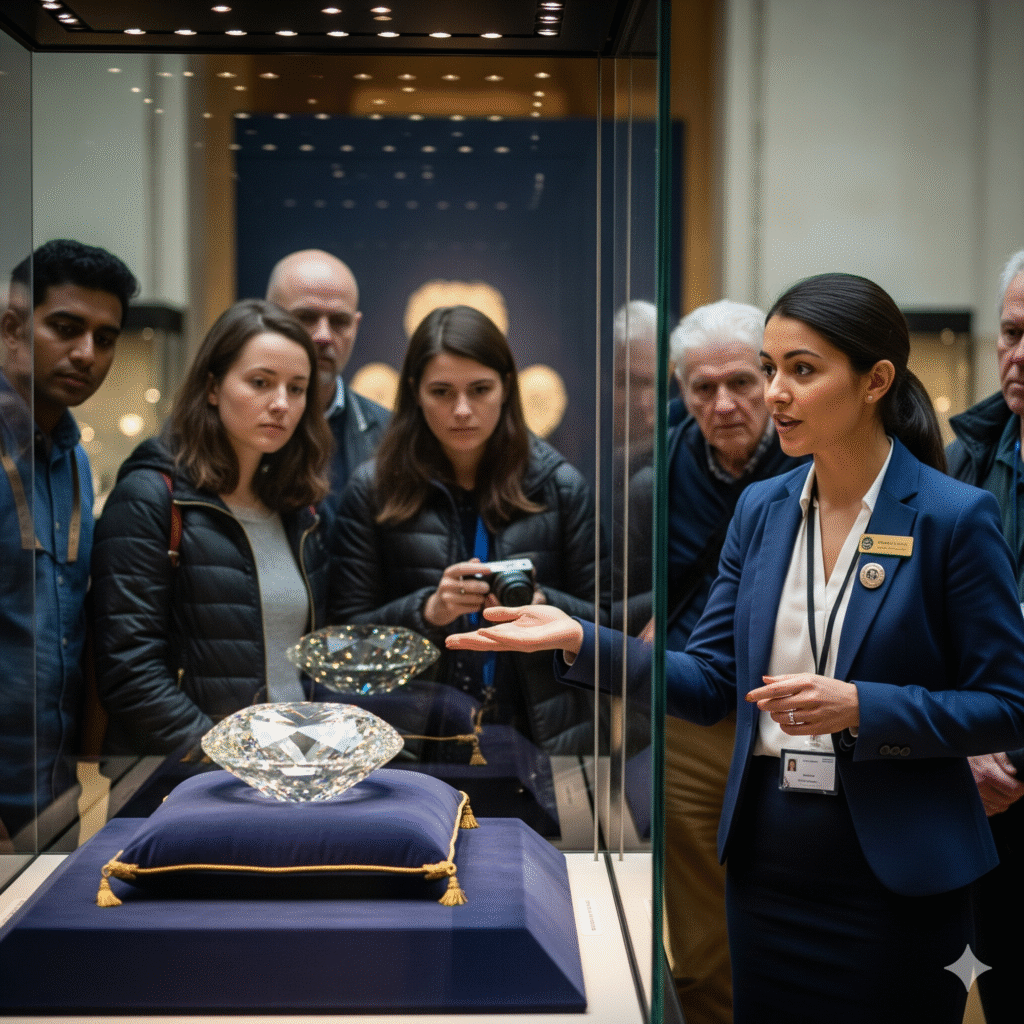 বিভিন্ন দেশ থেকে আসা পর্যটকরা যখন প্রশ্ন করে এই হীরের ইতিহাস নিয়ে, কি উত্তর দেয় কর্তৃপক্ষ?