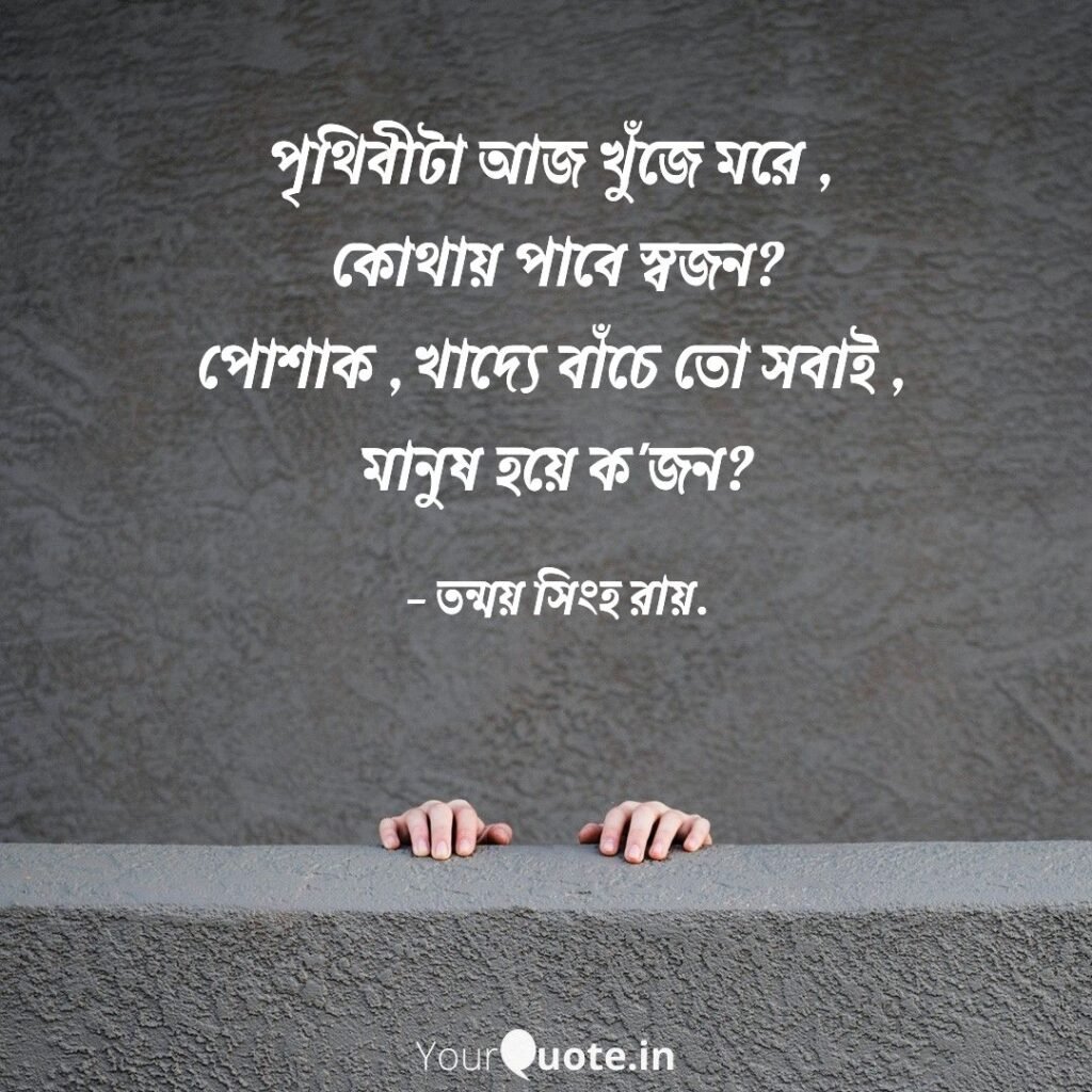 পৃথিবীটা আজ খুঁজে মরে, কোথায় পাবে স্বজন? পোশাক খাদ্যে বাঁচে তো সবাই- মানুষ হয়ে ক'জন?