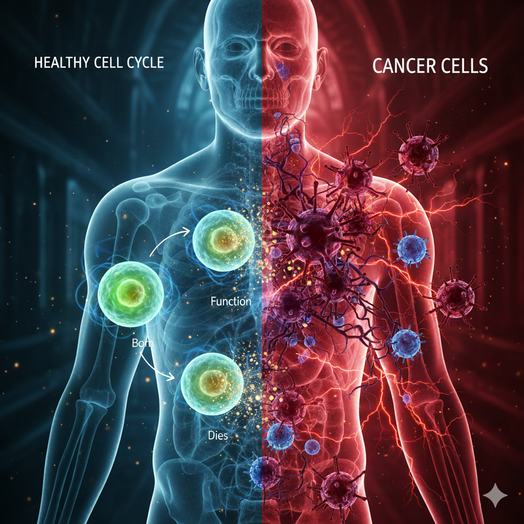 ক্যান্সার হয় যখন কিছু কোষ এই নিয়ম ভেঙে ফেলে।