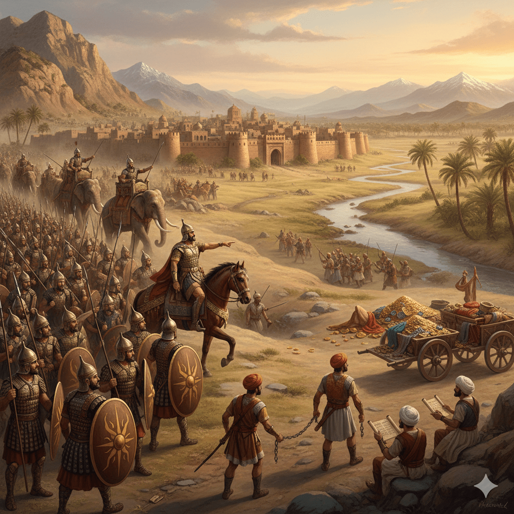 এবং ভারতীয় বীরদের জোরপূর্বক পারস্যের সেনাবাহিনীতে অন্তর্ভুক্ত করে