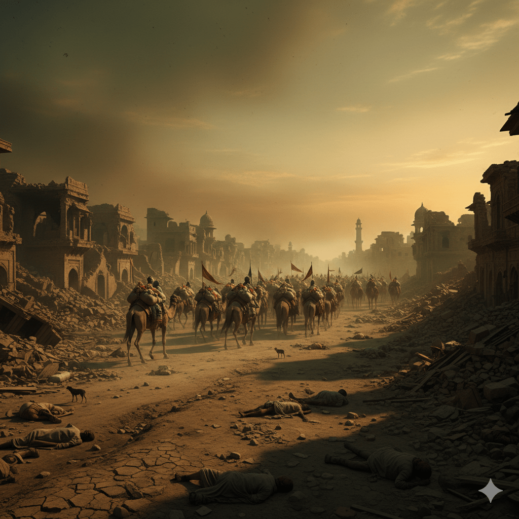 তখন তাঁর বিশাল বাহিনীর তাণ্ডবে উত্তর-পশ্চিম ভারতের অসংখ্য জনপদ ও গ্রাম