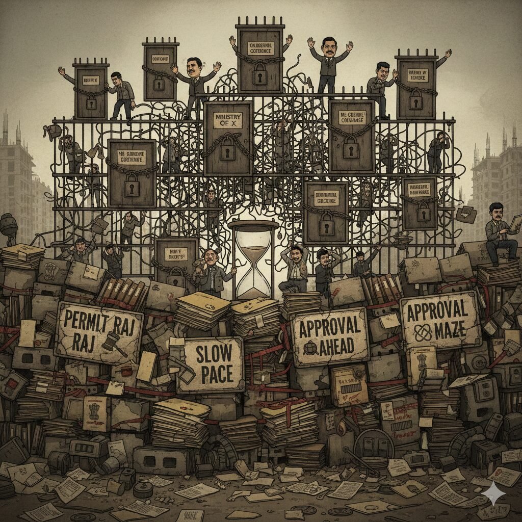 ভারতে দীর্ঘমেয়াদি R&D পুঁজি পাওয়া কঠিন। - ৪. রাজনৈতিক ও প্রশাসনিক জট