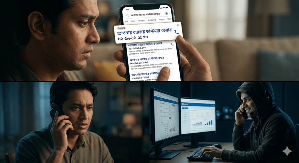 আমরা যখন গুগুলে (Google) কোনও ব্যাঙ্কের কাস্টমার কেয়ার নম্বর বা কোনও নামী প্রতিষ্ঠানের হেল্পলাইন খুঁজি,