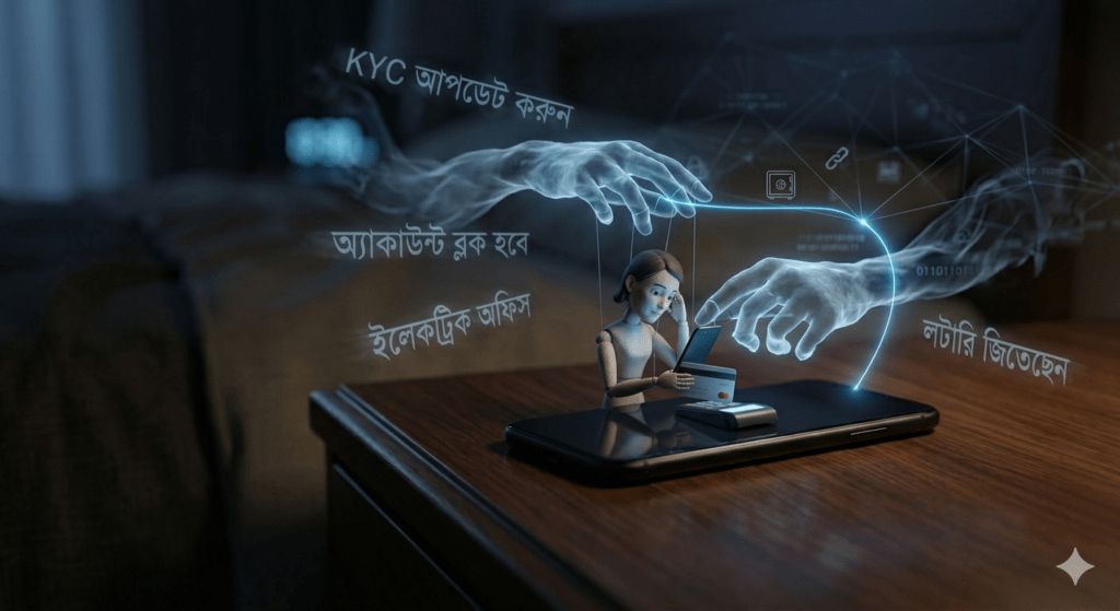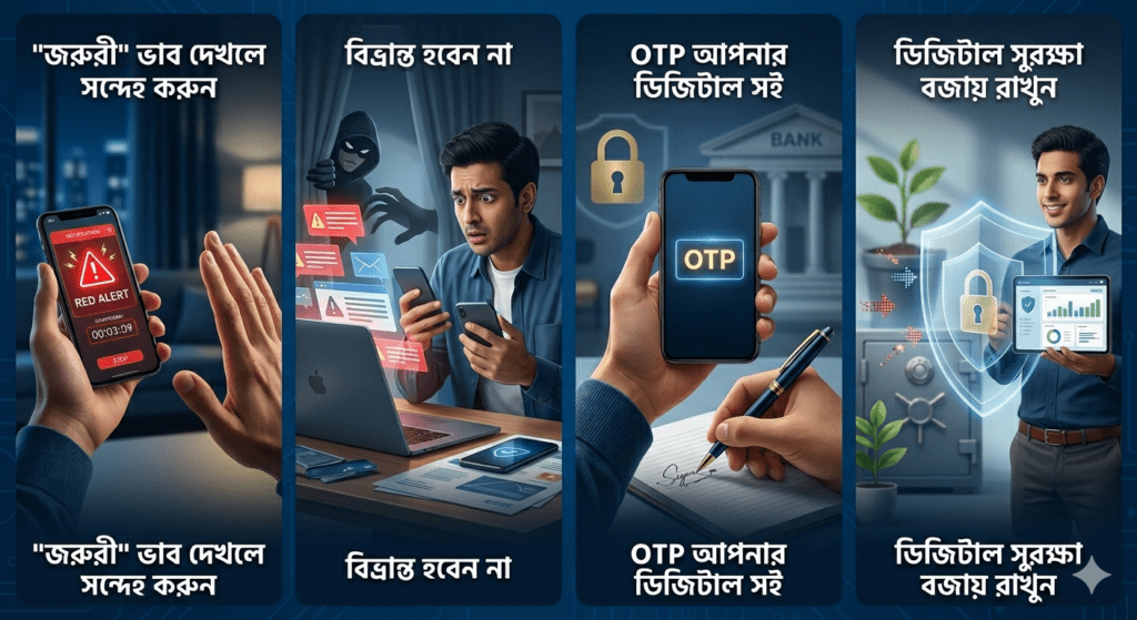 অপর প্রান্তের ব্যক্তিটা খুব মার্জিতভাবে কথা বলে আপনার থেকে ব্যাঙ্কিং তথ্য বা ওটিপি হাতিয়ে নেয়।