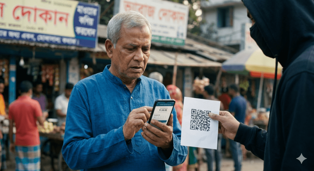 “এটা স্ক্যান করলেই আপনার অ্যাকাউন্টে টাকা ঢুকে যাবে।”
