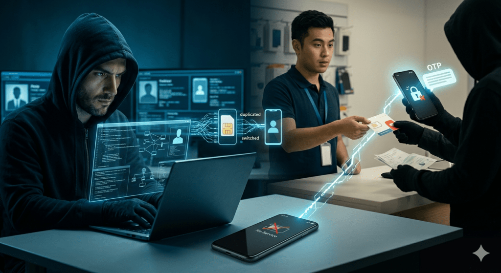 টেলিকম অফিস থেকে সংগ্রহ করে নিতে পারে, একে বলা হয় সিম সোয়াপিং (SIM Swapping).