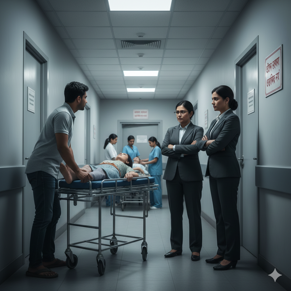 ঋণ নেয় বা সম্পদ বিক্রি করতে বাধ্য হয় চিকিৎসা চালাতে। - জরুরি চিকিৎসা দেরি হওয়া বা অস্বীকারের কারণে দুর্ঘটনা, হার্ট অ্যাটাক