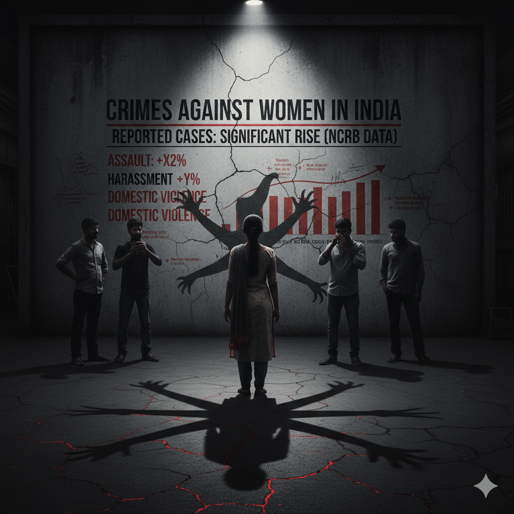 জাতীয় অপরাধ রেকর্ড ব্যুরোর তথ্য অনুযায়ী নারীর বিরুদ্ধে অপরাধের