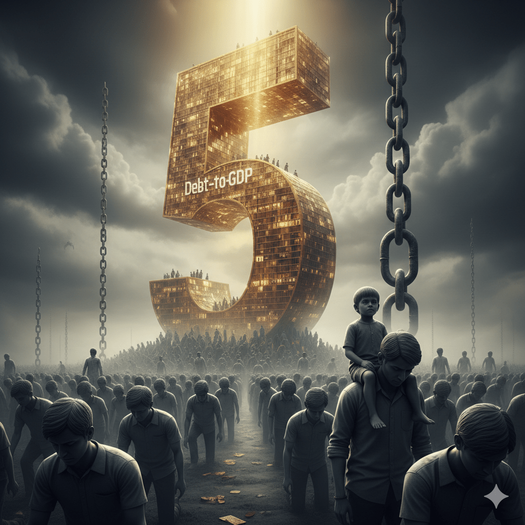 এমনকি এই স্বপ্নের সমান্তরালে দেশের ঋণের বোঝাও (Debt-to-GDP-ratio) আজ