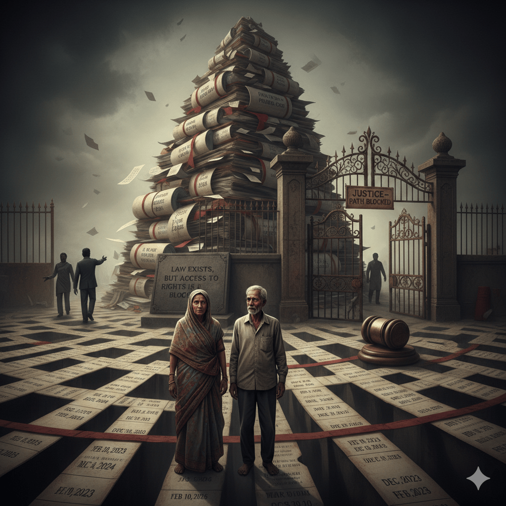 ভারতের বিচারালয়গুলো আজ এক অন্তহীন কালক্ষেপণের চক্রব্যূহে পরিণত হয়েছে।