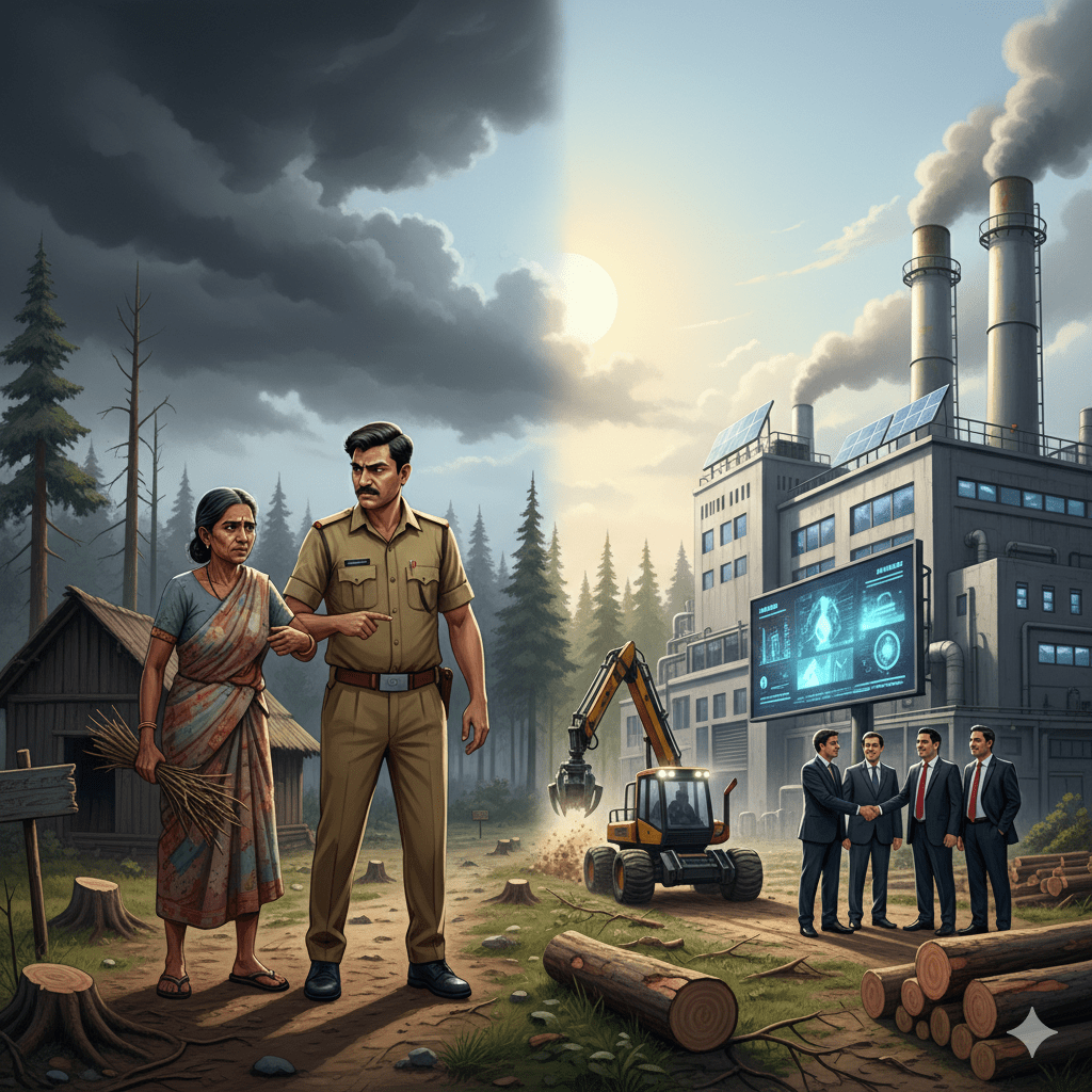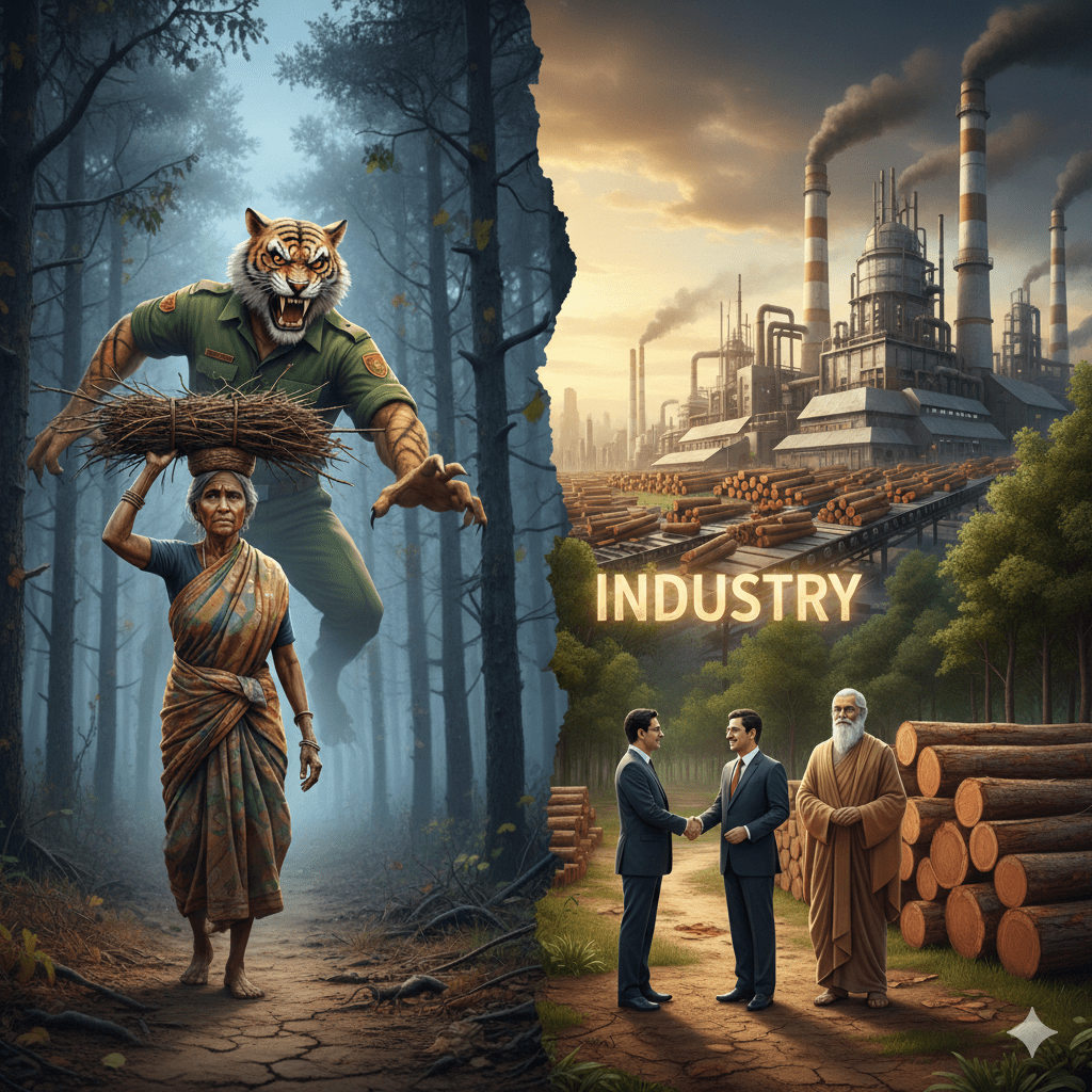 ভারতের বন আইন-এর একটা বাস্তব দৃশ্য কল্পনা করুন— একজন গ্রামবাসী শুকনো ডাল