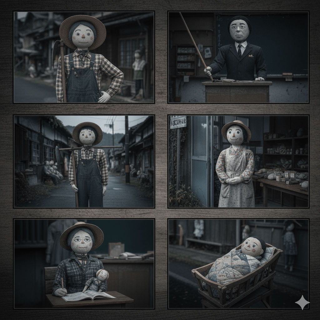 স্কুলের ছাত্র, শিক্ষক, কৃষক, দোকানদার, বৃদ্ধা, শিশু– এভাবে প্রতিটা পুতুলে তিনি বসালেন মানুষের মতন মুখ, ভঙ্গি এবং স্মৃতি (বিস্তারিত দেখুন)– (Tokyo Weekender) দশকের পর দশক ধরে Nagoro হয়ে উঠল এক পুতুল-গ্রাম।