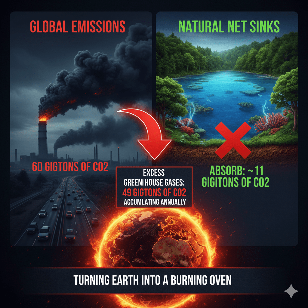 অথচ একই সময় পৃথিবীর জলজ ও স্থলজ মিলিয়ে সমস্ত প্রাকৃতিক নেট সিঙ্ক (Net Sink)