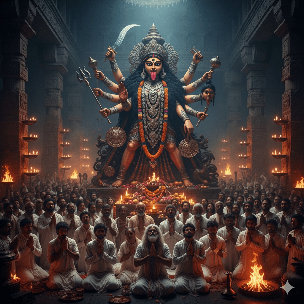 মন্দিরে ভক্তরা দাঁড়িয়ে আছে শ্রদ্ধার সঙ্গে, কিন্তু কিছুক্ষণের মধ্যেই দেখা গেল
