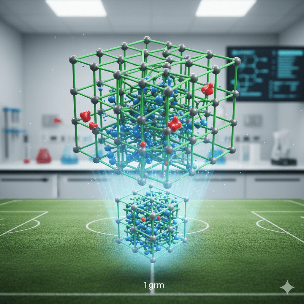 একটা ফুটবল মাঠের থেকেও বেশি। - লক্ষ লক্ষ ন্যানো-ছিদ্র।