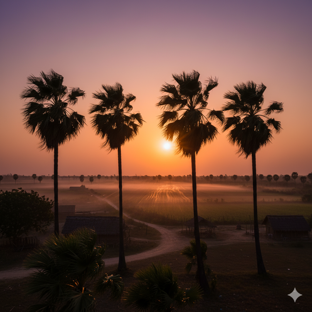 বাইরে হাওয়া দোলাচ্ছে তালপাতার ফাঁকে,