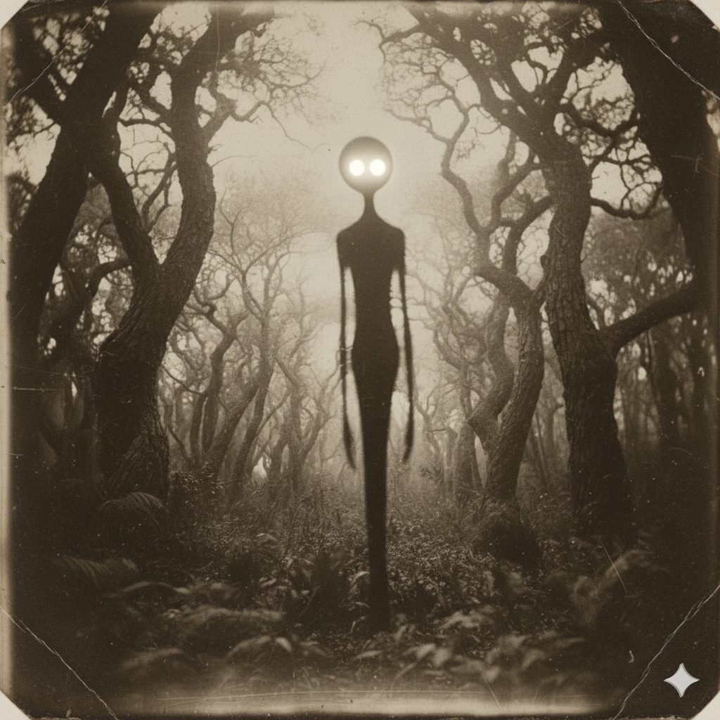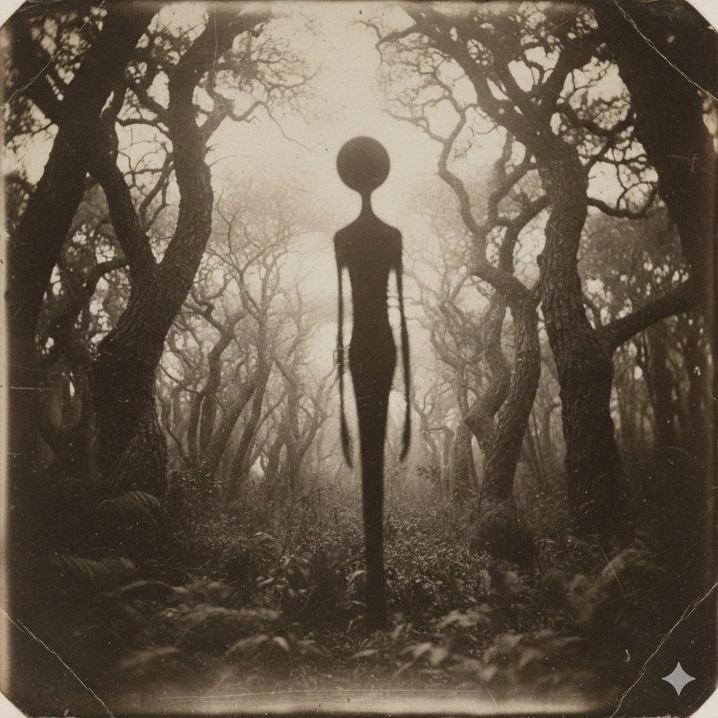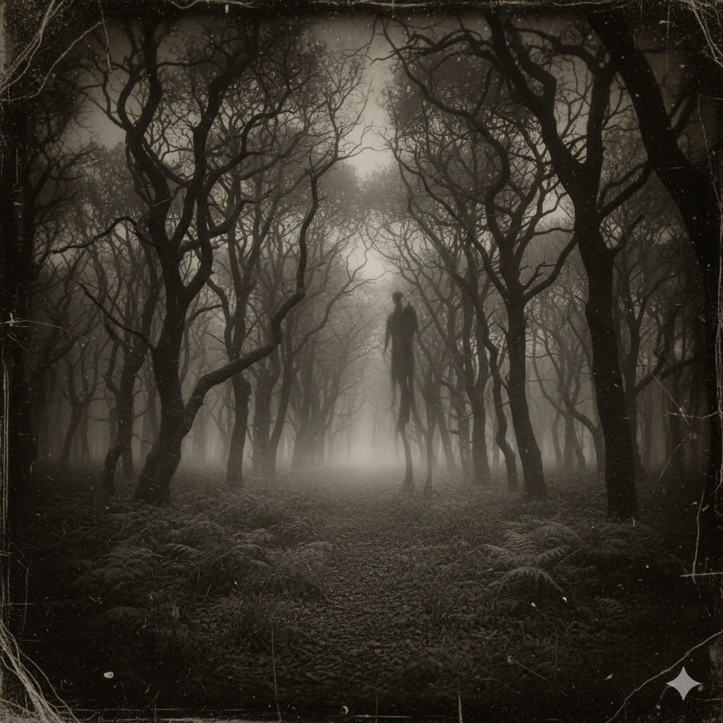 নিঃশব্দ বনের গভীরতায় দাঁড়িয়ে আছে এক জম কালো ছায়া-সত্তা।