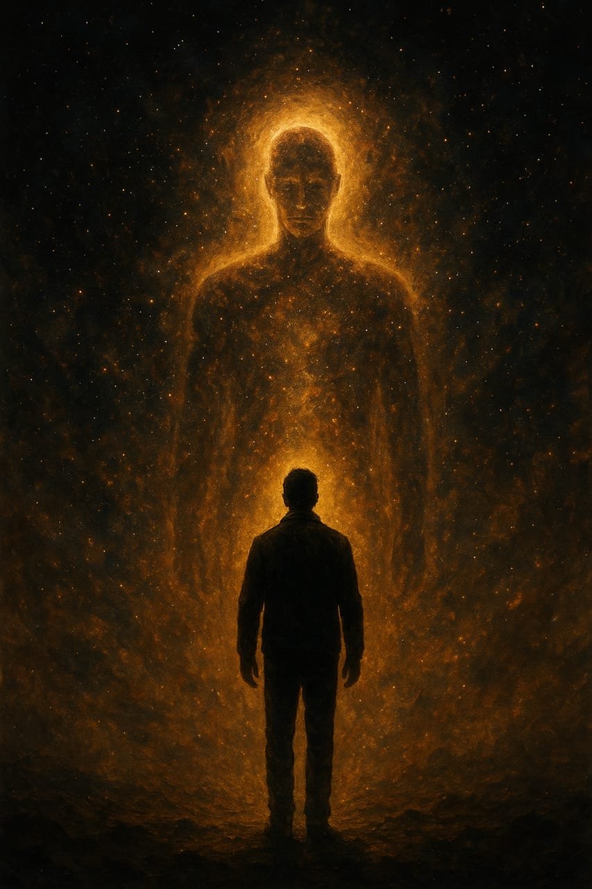 মানুষের ভিতরের নীরবতা আর ঈশ্বরীয় আলোর মিলন-অস্তিত্বের প্রতীকী প্রতিচ্ছবি.