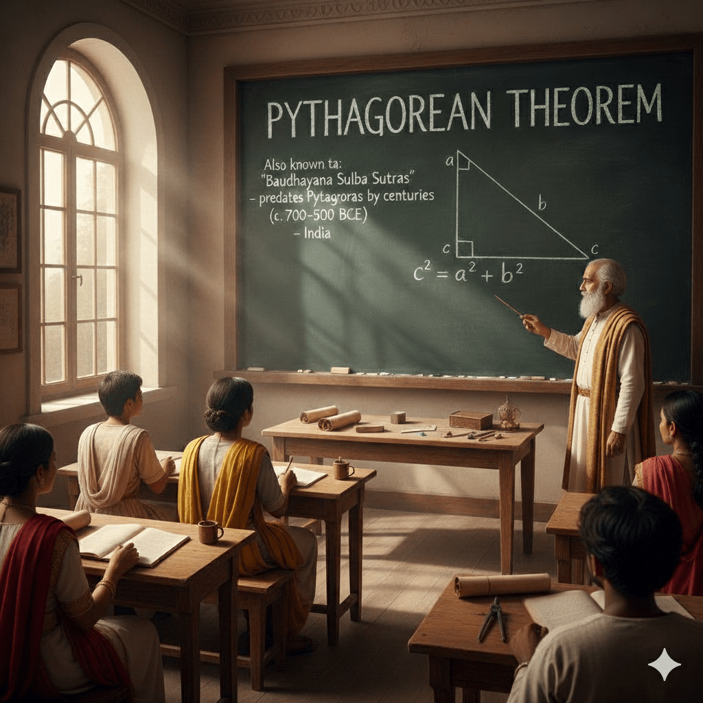 খ্রিস্টপূর্ব ৭০০-৫০০ সময়কালে, ভারতের (বিস্তারিত পড়ুন)) বৌধায়ন শুল্বসূত্রে একই সম্পর্ক স্পষ্টভাবে লেখা ছিল।