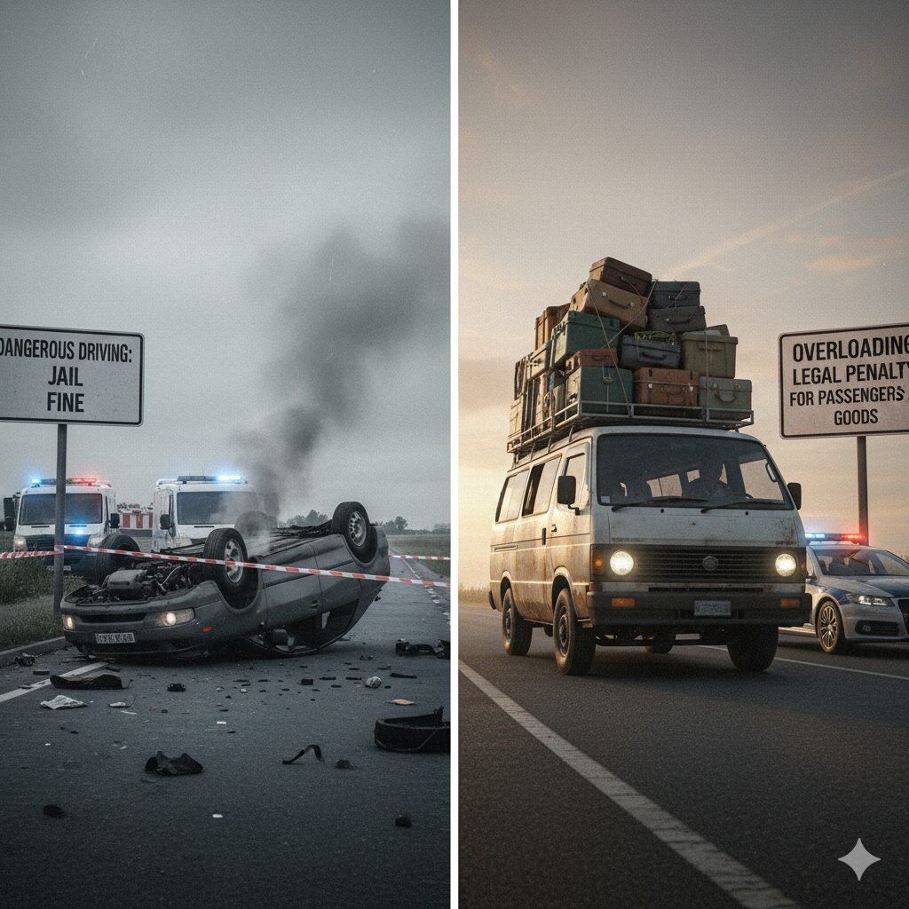 - ওভারলোডিং– যাত্রী/ মাল আনা নেওয়ায় আইনি শাস্তি।