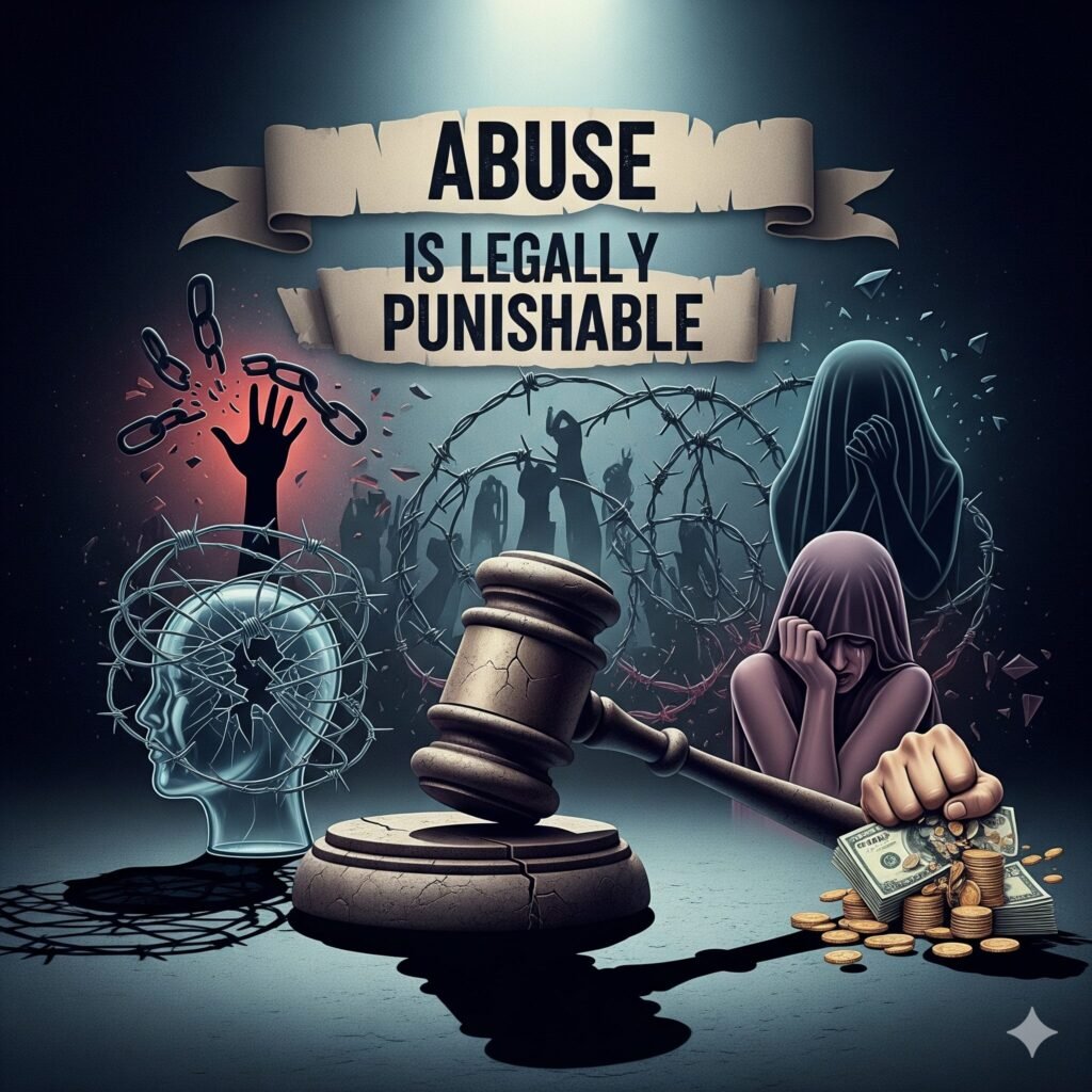 - শারীরিক, মানসিক, যৌন, আর্থিক–