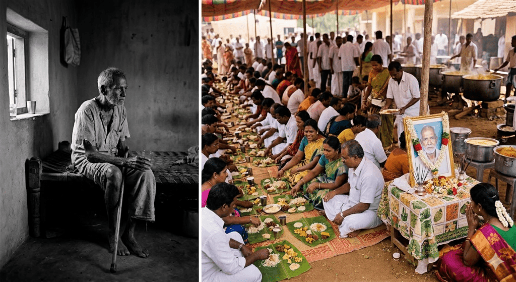যে মানুষটা আজ মৃত্যুর মুখে, তাঁর মৃত্যুর পর শত শত মানুষকে ডেকে খাওয়ানো কী বেশি জরুরী,