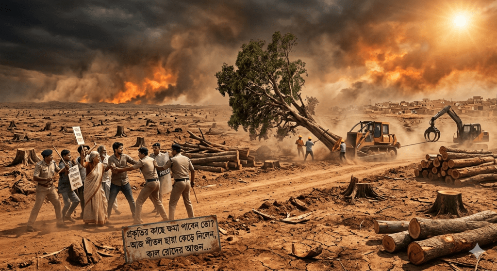 গরমের তীব্রতায় যখন মানুষের নাভিশ্বাস উঠছে, তখন আপনারা বেছে বেছে সেই প্রাচীন ছায়াগুলোকেই সরিয়ে দিয়েছিলেন, তাও ঠিক এই সংকটময় অবস্থায় দাঁড়িয়ে।