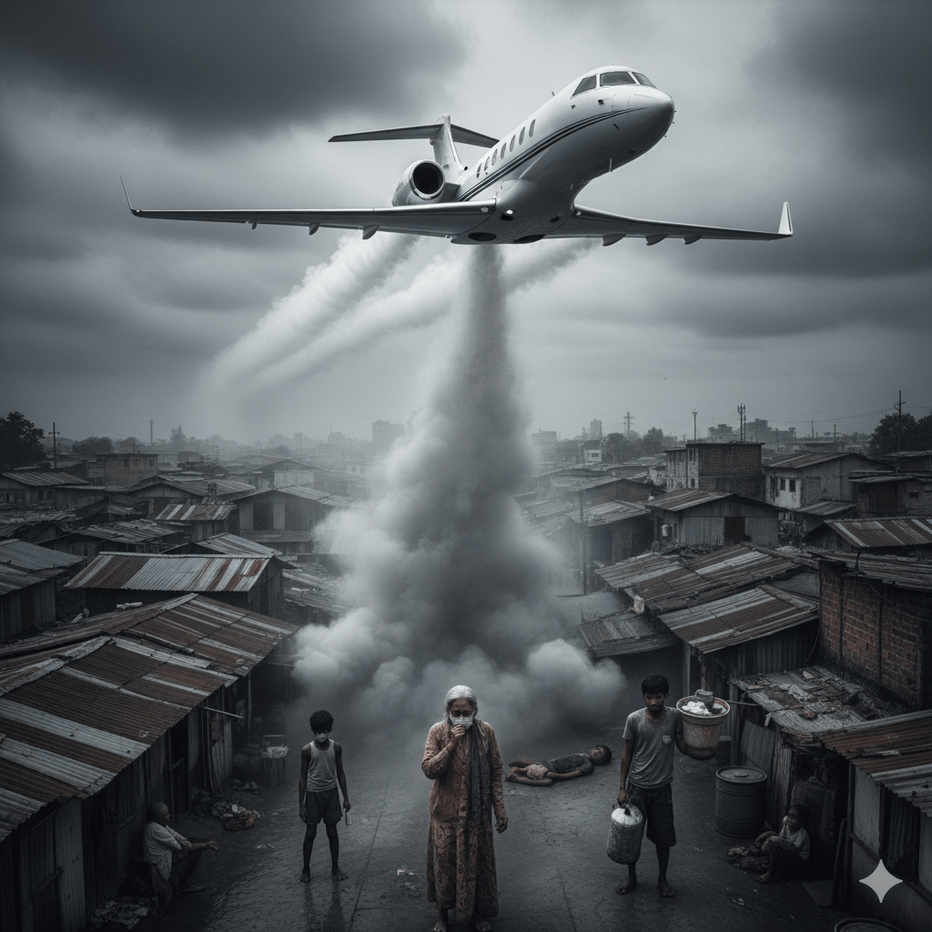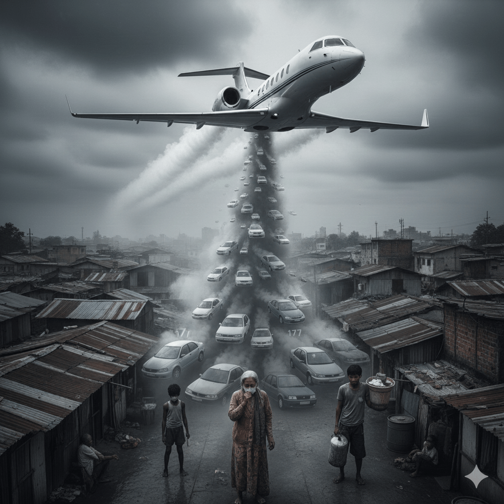 একটা প্রাইভেট জেট উড়লে, তার ধোঁয়া কেবল আকাশে মিশে যায় না,